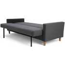 Click, clack the sofa's back. Is there any piece of furniture that's more space saving and simply sensible than a modern sofa bed? Take our Brooks 3-seater grey fabric sofa bed. It has clean contemporary lines, with slim arm rests, button back seating and natural wooden legs. Foam and fibre filled seats offer a comfy place to perch. But need a bed in a flash? No problem, with a click, clack it pulls out into a compact double. Brilliant.