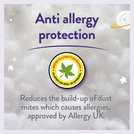 The Slumberdown Allergy Protection bedset has been created for children. This lovey soft touch cotton duvet is 4.5 Tog which is ideal for children as they tend to overheat quicker. The pillow has the same soft touch cotton over and a reduced fill to ensure it provides the right support for smaller heads and necks. Due to its unique filling this product has Allergy UK's seal of approval, which is awarded to products that have been tested to very high standards by leading allergy specialists, providing asthma, allergy and dustmite protection.