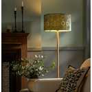 A much-loved William Morris Sunflower pattern adorns this fabric shade. Symmetrical blooms and trailing vines layer up to create an inviting but darkly elegant look. Rich and intense by day and warm and glowing by night. Easy to fit to a ceiling light or table lamp. Or use on both, to bring a decorative harmony to your space.