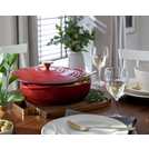 Sizzling style. Our classic cast iron casserole dish is a trusted kitchen favourite. Great for curries, stews and hearty hotpots. It spreads heat evenly and keeps your food warm until you're ready for seconds. Pop it in the oven or on the hob then take it straight to the table. Gas, electric, induction, it can handle them all. Bring a rustic touch to your kitchen with its deep red tones, gradient finish. Built to last. Feed the family for many feasts to come.