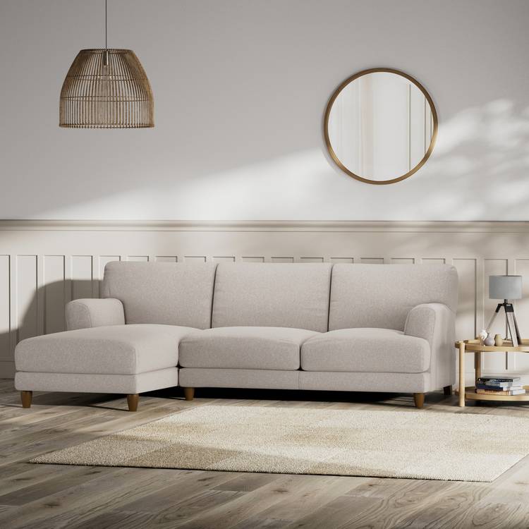 Habitat Askem Fabric Left Hand Corner Sofa - Stone -Dark Leg