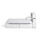 Combine smart storage with modern style. The Lloyd single cabin bed with storage headboard comes with an in-built shelf and pull-out side drawer, plus 2 deep underbed storage drawers. The perfect hideaway for toys, clothes and more, this bed is a great space-saver, keeping everything you need in one tidy footprint. Its white finish and cut-out handles create a fresh and uncluttered look. A modern and sturdy bed designed to last as your child grows, from age from 6 years upwards.