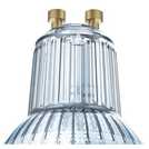 The Osram 50W LED Full Glass GU10 Bulb - Twin Pack has a warm white glow.