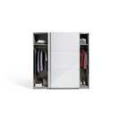Habitat Holsted White Gloss Extra Large Sliding Wardrobe comes with 2 fixed shelves and 2 fixed hanging rails only. Adding extra shelving would invalidate your warranty.