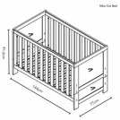 The Nika cot bed is compatible with a 140x70 mattress. Depths can vary due to the brand but the most common depth is 10cm