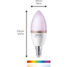 The WiZ LED full colour candle-shape bulb brings smart lighting for your daily living. Perfect for any decorative fixtures with E14 medium base. Create the ambience of your choice with 16 million colours as well as warm to cool white light. You can set schedules to turn lights on and off according to your daily or weekly routines, control with your smartphone or your voice and have remote access to your lights even when you're away. WiZ lights connect to your existing Wi-Fi, no additional hardware is needed.