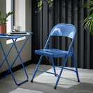 Vibrantly versatile. Our Macadam folding chair is a sleek space-saving seat. A modern twist on a classic 1970's design, it's made from blue, powder coated steel with rubber feet. No slipping or scuffing the carpet. Extra guests for dinner? Have a few handy to fit everyone around the table. Just fold away when not needed. Work from home? Tuck one under a desk and focus on style. So lightweight, you could even pack it up for a picnic. Cool.